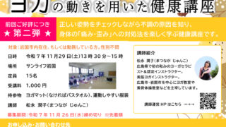 11月28日(土)13時30分より、「サンライフ岩国」様にて「健康講座」を行います。
